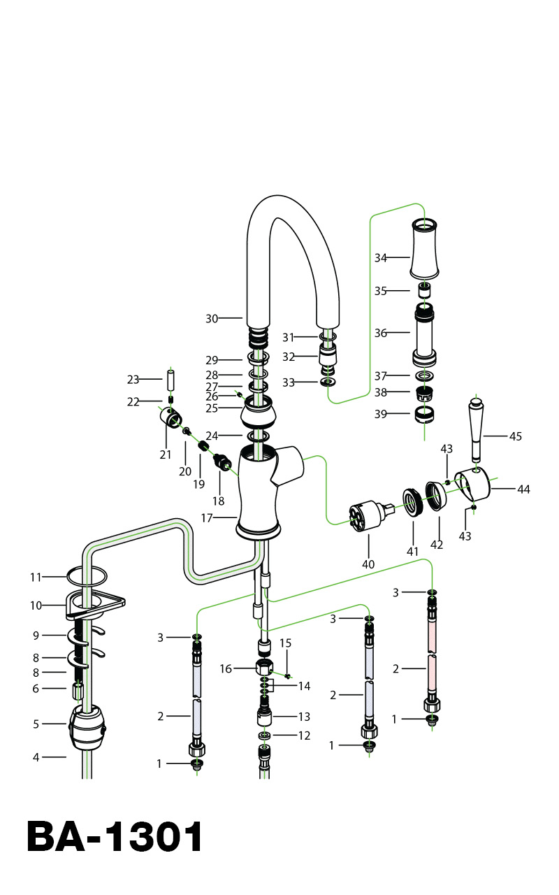 En klassisk köksblandare i retrostil med diskmaskinsavstängning och utdragbar slang